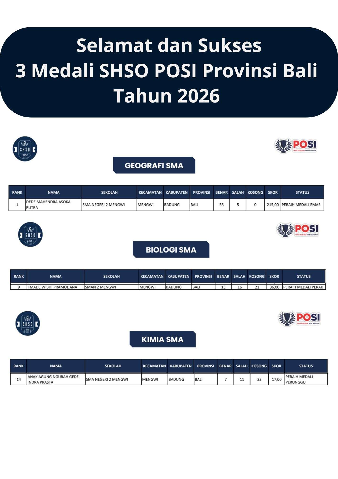 “Senior High School Olympiad (SHSO) Tahun 2026” tingkat Siswa jenjang SMA/MA/SMK se-Provinsi Bali.